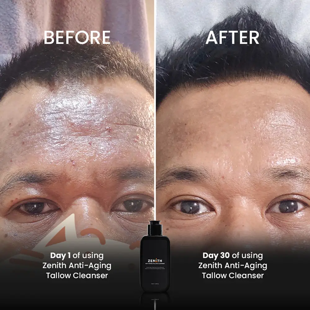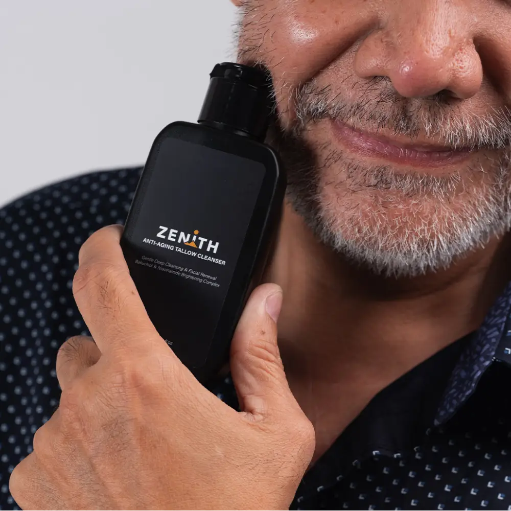 Most men notice cleaner, softer skin within 3 days of using the Zenith Anti-Aging Tallow Cleanser. Visible brightening and more even skin tone typically appears within 2 weeks of consistent use. That’s why we offer our 30-day money-back guarantee – we’re confident you’ll see real brightening and anti-aging results.